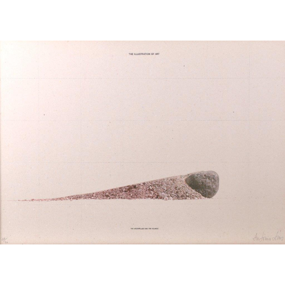 ANTONIO DIAS – The Illustration of Art: The Archipelago and the Island, década de 1970. Serigrafia sobre cartão pertencente à série “The Illustration of Art”, composta por quatro trabalhos realizados por Antonio Dias (1944–2018) durante a década de 1970. A obra faz parte de um dos períodos mais conceituais do artista, em que ele investiga as fronteiras entre imagem, linguagem e o próprio significado da arte. Em The Archipelago and the Island, Dias apresenta uma reflexão poética e crítica sobre o território e o isolamento — metáforas recorrentes em sua produção. Dimensões: 70 × 50 cm