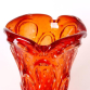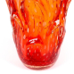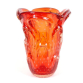 Elegante vaso em vidro artístico de Murano na tonalidade alaranjada, com decoração em relevo no clássico padrão “orelhinha” e interior com o efeito bulicante, caracterizado por pequenas bolhas aprisionadas no vidro durante o processo de sopro. Dimensões: Altura 33 cm × Diâmetro 26 cm