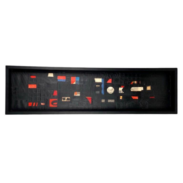 Tinta acrílica, colagem e materiais diversos sobre Eucatex30 x 120 cmVerso