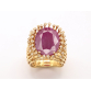 Anel de ouro amarelo 18k com diamantes de aproximadamente 0.80cts no total e rubi central de aproximadamente 15cts no total. Medida 18. Peso total: 20,5g.