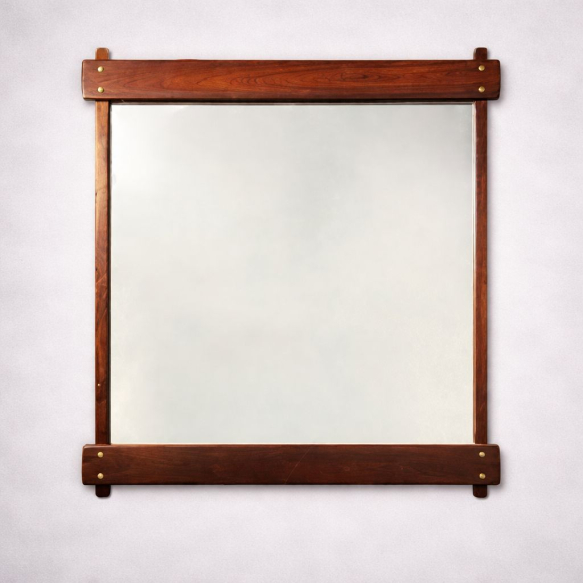 SERGIO RODRIGUES - Grande espelho de parede Azen, todo confeccionado em jacarandá maciço. Essa peça é um dos clássicos do mais carioca dos designers. Déc. de 1960. Med: Alt. 107 x 90 x 5 cm. P.S.: Caso tenha interesse em ver a peça pessoalmente, entre em contato conosco.