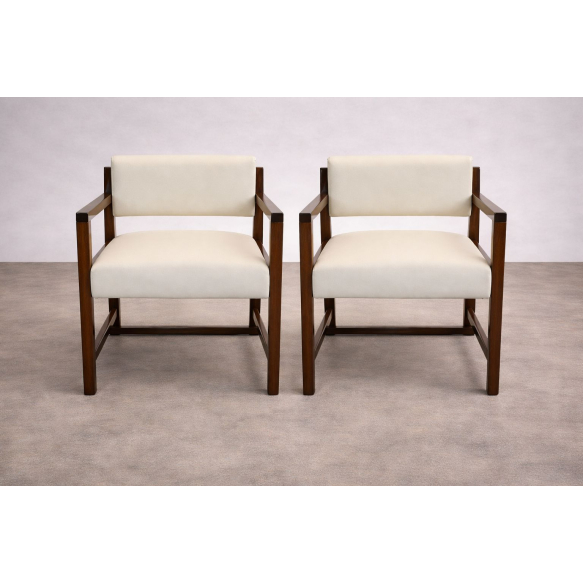 JORGE ZALSZUPIN - Latelier. Par de cadeiras modelo Del Rey, estrutura em jacarandá maciço, assento e encosto estofados com tapeçaria em tecido. Estado completamente original. Na parte inferior apresenta placa de acervo do ministério da fazenda. Brasil, década de 60. 72 x 57 x 58 cm. P.S.: Caso tenha interesse em ver a peça pessoalmente, entre em contato conosco.