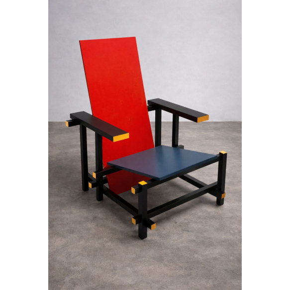EspañolGERRIT RIETVELD - Cadeira Vermelho e Azul foi uma cadeira originalmente projetada em 1917 por Gerrit Rietveld, passou a ser fabricada por Gerard van de Groenekan (1904-1994). (A x L x P). Representa umas das primeiras pesquisas artísticas com objetos de três dimensões do movimento De Stijl. A saber: A primeira projetada ficou sem pintura até 1920, na cor original da madeira que foi construída, a faia. O arquiteto Bart van der Leck, arquiteto membro do movimento De Stijl, viu o modelo original e sugeriu que Rietveld adicionasse "cores brilhantes"[2]. Ele construiu o novo modelo de madeira mais fina e pintou-o inteiramente de preto com áreas de cores primárias, como as pinturas de Piet Mondrian[1]. O efeito desse esquema de cores fez com que a cadeira parecesse quase desaparecer contra as paredes e o chão pretos da Casa Schröder (casa que seguiu os parâmetros do movimento De Stijl, projetada pelo artista sob encomenda de Truus Schröder), onde foi posteriormente colocada. As áreas de cor pareciam flutuar, aparentando uma estrutura quase transparente. Med. 85 x 70 x 80 cm. P.S.: Caso tenha interesse em ver a peça pessoalmente, entre em contato conosco.