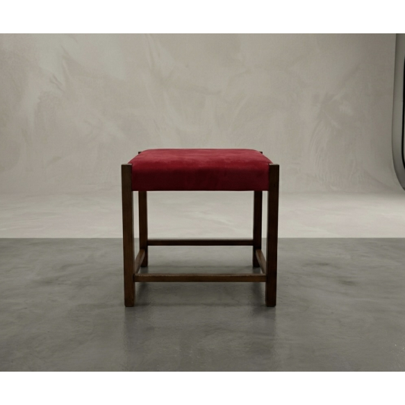 SÉRGIO RODRIGUES - Banco Marcos - 1960, em madeira nobre e tecido. Estrutura com linhas retas, executadas em madeira nobre e assento estofado em tecido. 46 x 46 x 44 cm de altura. P.S.: Caso tenha interesse em ver a peça pessoalmente, entre em contato conosco.