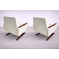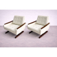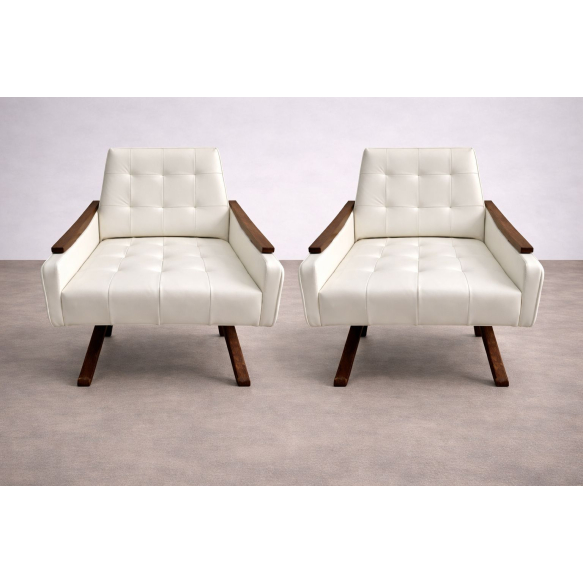 L’ATELIER - Par de poltronas produzidas pela L’Atelier na década de 1960, com estrutura em jacarandá e estofamento em couro natural branco. A combinação de linhas retas e curvas sutis expressa o refinamento técnico e estético característico da produção da L’Atelier, importante marca fundada por Jorge Zalszupin. Dimensões: Altura 66 cm × Largura 75 cm × Profundidade 73 cm