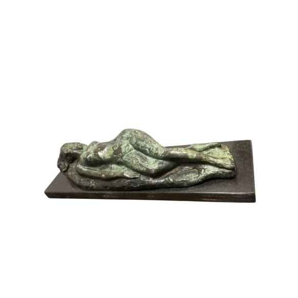 Humberto Cozzo. Dama. Antiga escultura em bronze com base em mármore. Assinado na base. 10 x 16 x 51 cm (sem base) e 14 x 56 x 18 cm (com base). Ex Coleção Emanoel Araujo.