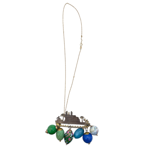 Joias de crioula. Uma pequena penca com balangandãs diversos, encrostados em metal dourado, com feixes e correntes em ouro, para uso como broche ou colar. Século XIX ou início do Século XX. Kg.0,046.