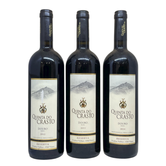 Lote composto por três garrafas,sendo: Quinta Do Crasto Reserva Doc Douro, 2012, Quinta Do Crasto Reserva Doc Douro, 2013 e Quinta Do Crasto Reserva Doc Douro 2014.
