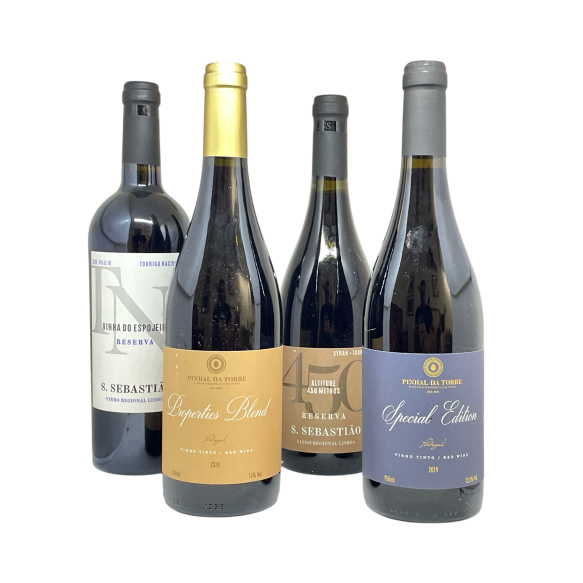 Lote compsoto por 4 garrafas, sendo: São Sebastião Touriga – Syrah 2018, São Sebastião Espojeiro Touriga Reserva 2019, Pinhal da Torre Special Edition 2019 e Pinhal da Torre Proprieties Blend 2020.