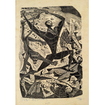 LÍVIO ABRAMO - Xilogravura, em papel japonês, editada em 1946 pela Sociedade dos Cem Bibliófilos do Brasil para o livro "Pelo Sertão", de Afonso Arinos. Ed.41/110. MI: 25,5 x 18cm. ME: 30,5 x 23cm. Com moldura e passe-partout: 44,5 x 33cm. Ass. inf. esq.