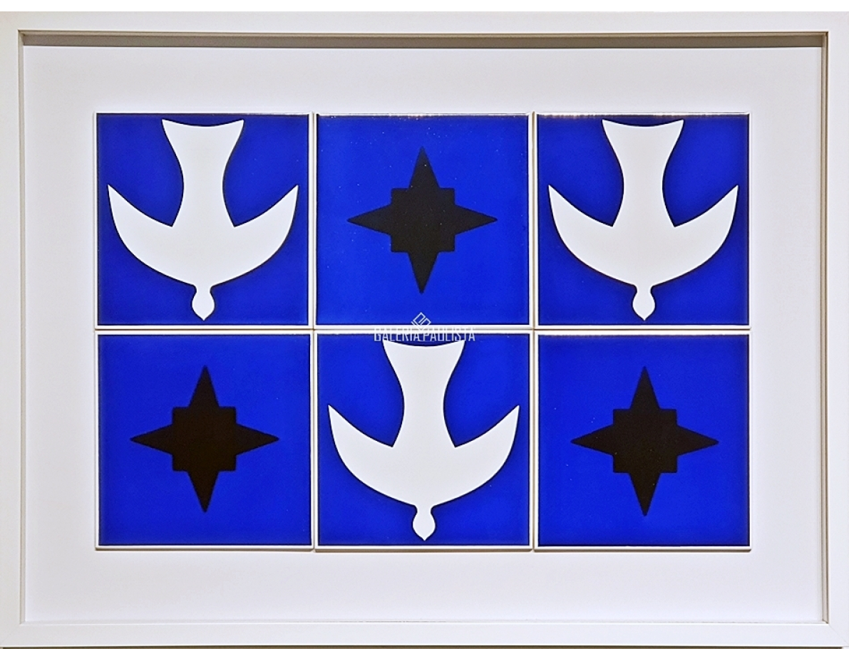 ATHOS BULCAO "Igrejinha Nossa Senhora de Fatima-1957" Painel de Azulejos -Meds: 31x46 cm (MI) e 45x60 cm (ME-Moldura) -Cachet/Carimbo da Fund Athos Bulcã.
