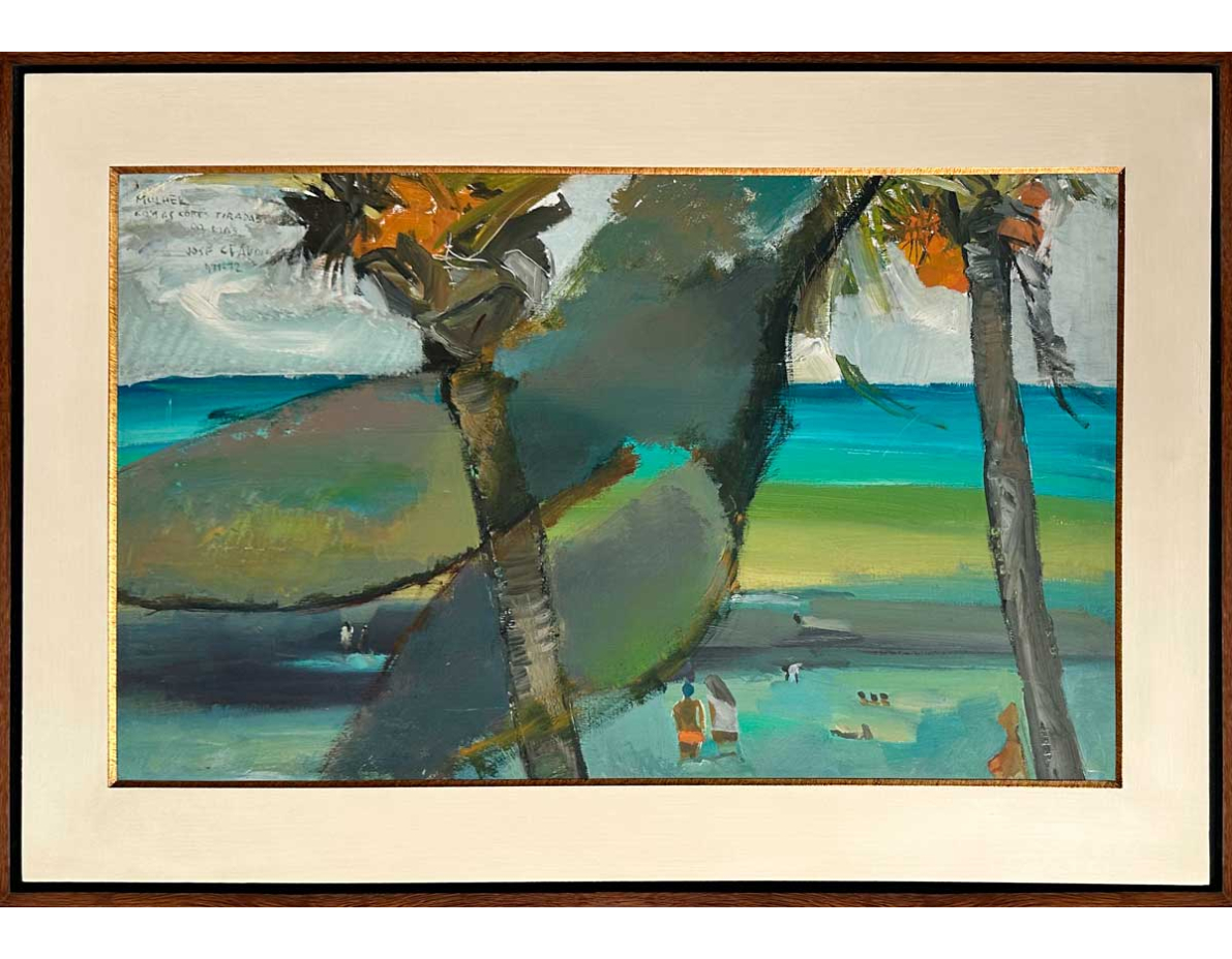 JOSÉ CLAÚDIO - Mulher com cores tiradas do mar - 1972 - óleo sobre eucatex - 40 x 75 cm.