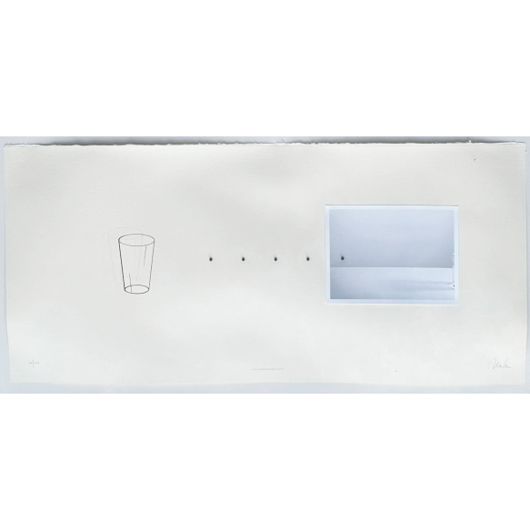 Waltércio Caldas – Copo fotografando copo – Impressao, alfinetes e fotografia sobre papel de alta gramatura 30/100 – 2015 – 44,5x95 cm – ass.inf.dir. Edição do Clube de Colecionadores de Fotografia do MAM-SP.