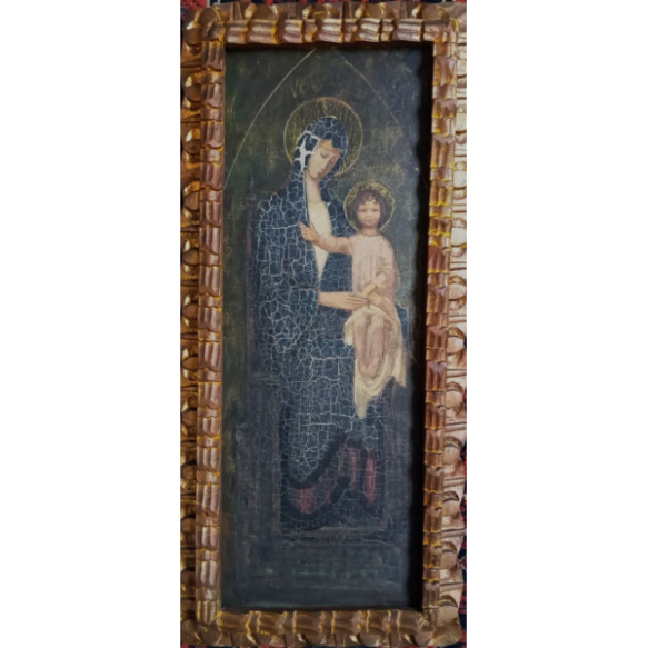 Escola Cusquenha, Nossa Senhora com menino, Óleo sobre madeira, 60x20