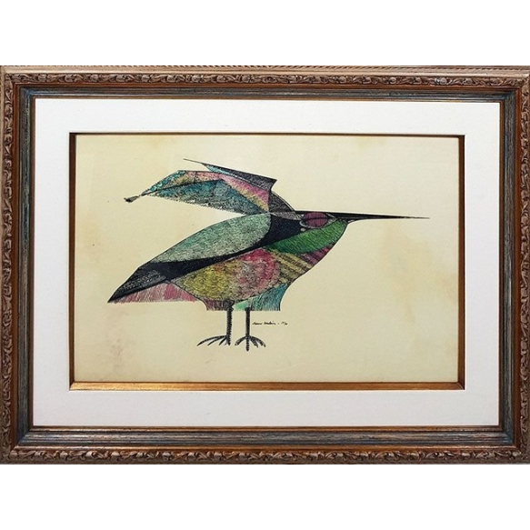 Aldemir Martins - Pássaro - Impressão aquarelada à mão - 45x70cm - Assinatura Canto Inferior Direito (Acompanha documento emitido pelo Estúdio Aldemir Martins)