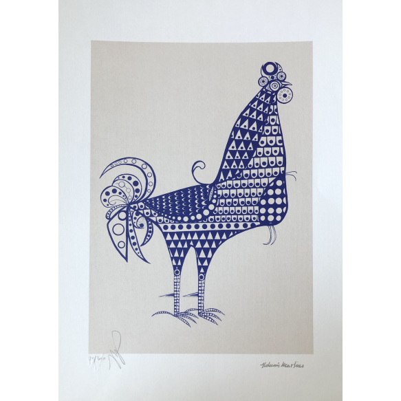 Aldemir Martins - Galo Azul - Serigrafia 25/100 - 50x35 - Acid - Edição Postutuma