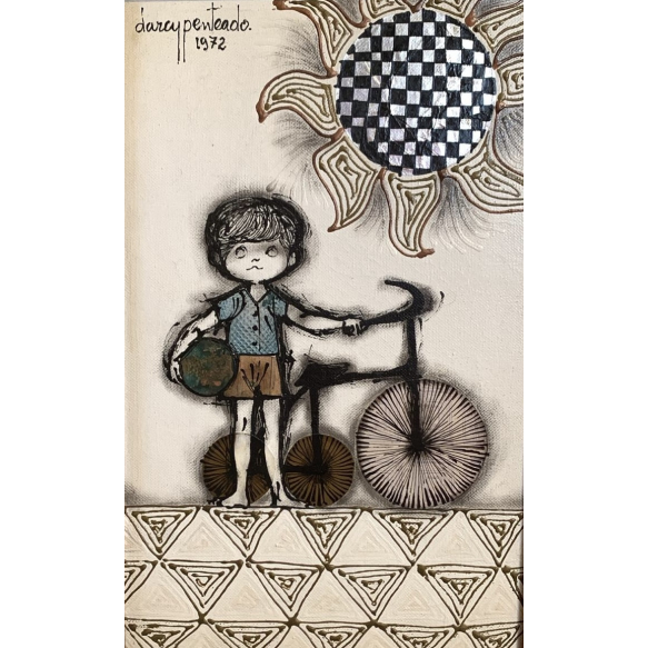 EspañolDarcy Penteado - Meninos com Bicicleta e Sol - ost - 25x35 - 1972 - Possui selo da Galeria Augosto Augusta - Assinada