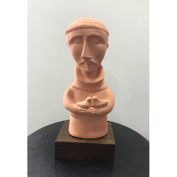 EspañolInos Corradin - São Francisco - Escultura em Terracota - 25cm Alt - Base em Madeira