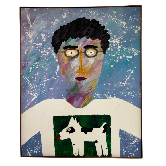 EspañolÂngelo de Aquino, Auto retrato com Rex, 1986, Liquitex sobre tela, 100x80, Assinado no verso, Belas Artes
