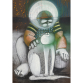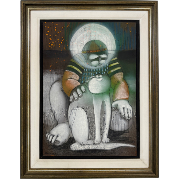 EspañolHELENOS - "Figura com gato" - técnica mista sobre papel colado sobre papel - 47 x 33 cm - a.c.i.e. 1973