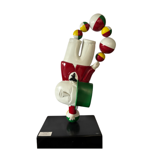 EspañolInos Corradin, Equilibrista com chapéu, Escultura em resina, 107 alt., Belas Artes