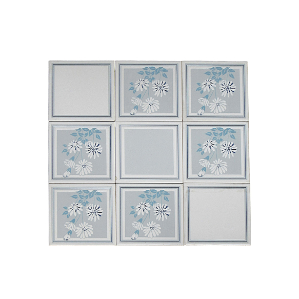 Manufatura Brennand - IASA painel com 9 azulejos soltos fundo vitrificado nos tons de azul e branco 46 x 46cm "Flores" timbrado no verso Recife - Brasil
