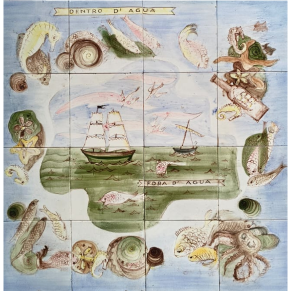 Osirarte azulejo 60 x 60cm "Dentro D'Agua e Fora D'Agua" . Participou da Exposição no SESC 'Pequenas Pedras Polidas" publicado no catalogo da exposição em 2023.
