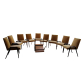 Conjunto de dez cadeiras design ANOS 50 em jacarandá com assento e encosto num só corpo revestidas em tecido. Cadeiras dos anos 50 originais de época , em uso e bom estado de conservação.