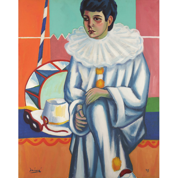 Inimá de Paula - “O jovem Arlequim” - Óleo sobre tela - 92 x 73 - 1978 - Ass. Canto inferior esquerdo e verso - Reproduzido no dicionário raisonné da Fundação “Inimá de Paula obras catalogadas” a pág. 268.