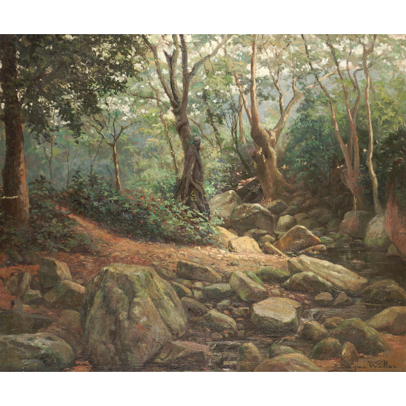 Edgar Walter - Paisagem do Jardim Botânico - Rio - Óleo sobre tela - 65 x 78 - 1957 - Ass. Canto inferior direito - No verso carimbo do SNBA (Salão Nacional de Belas Artes) 1957