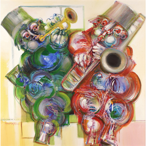 Alexandre Rapoport - “Uma pequena serenata barroca” - Óleo sobre tela - 70 x 70 - 2003 - Ass. Canto inferior esquerdo e verso - Obra reproduzida no livro do artista á pág. 59.