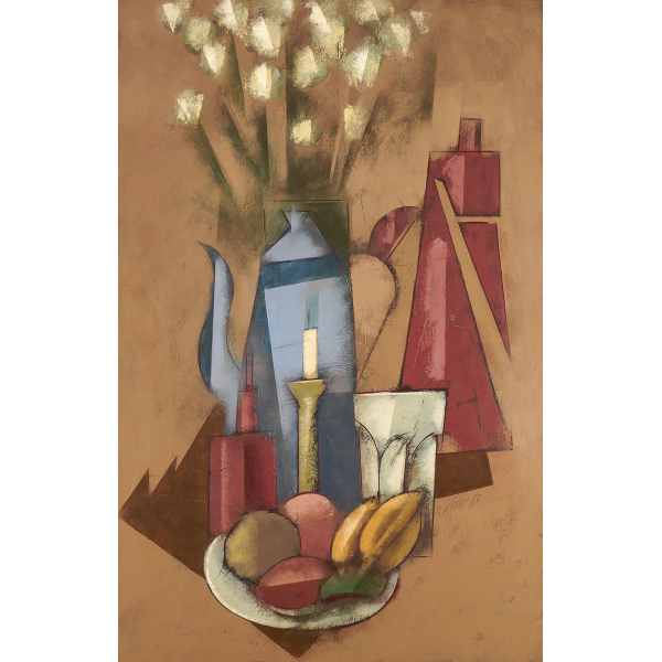 Vinil encerado e colado sobre tela 100 x 65 cmAss. Canto inferior direito e verso
