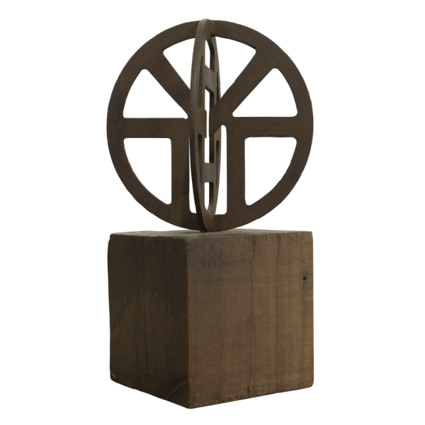 Escultura em madeira e círculos em chapa46 x 18 x 18 cmAss. Na base