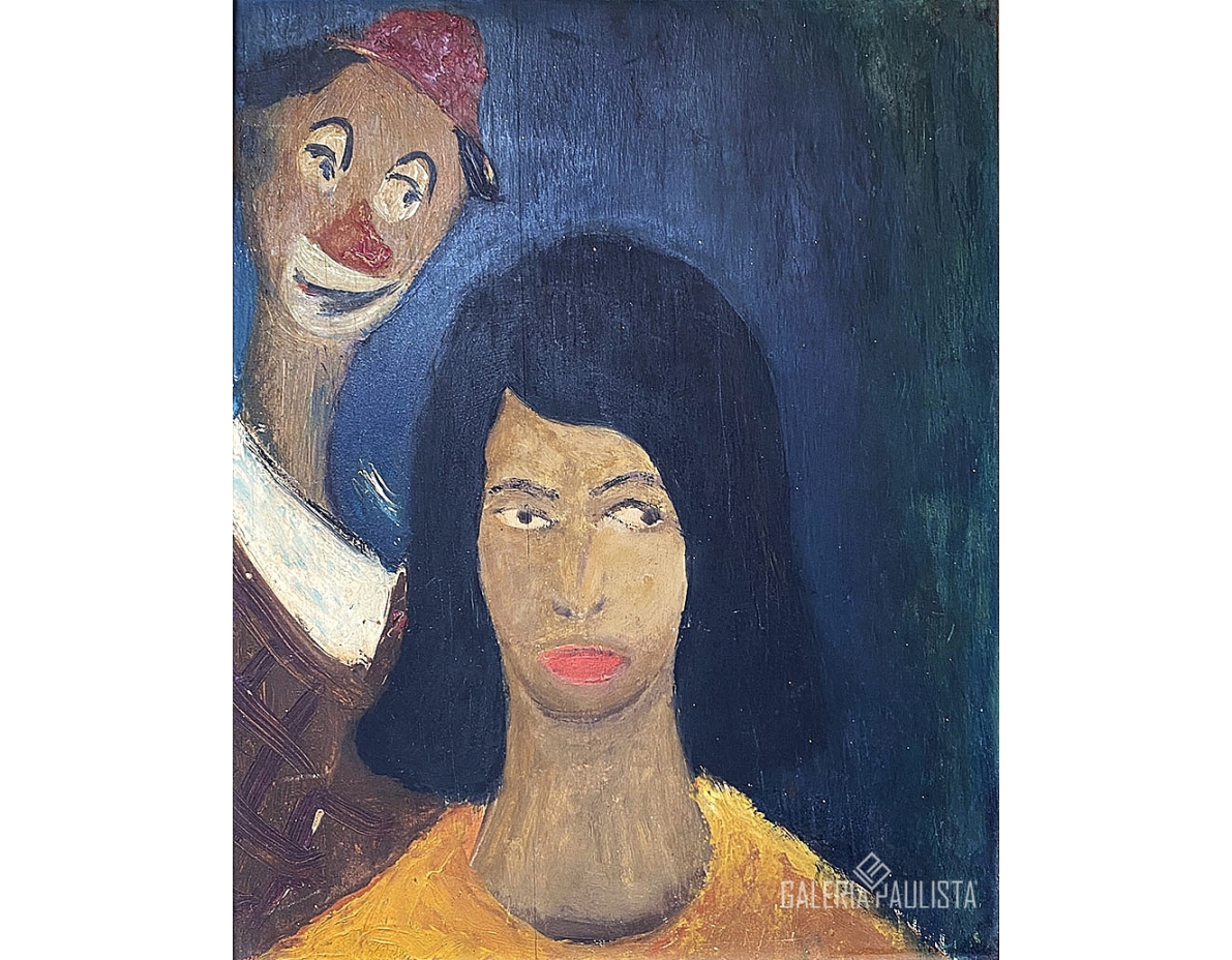 SERGIO MILLIET (1898-1966) "Mulher e Palhaco" Oleo Sobre Madeira -Med 30 x 23 cm (obra) -Assinado no "SM" no CSD -Apresenta Cachet no Verso da Casa Mendes.