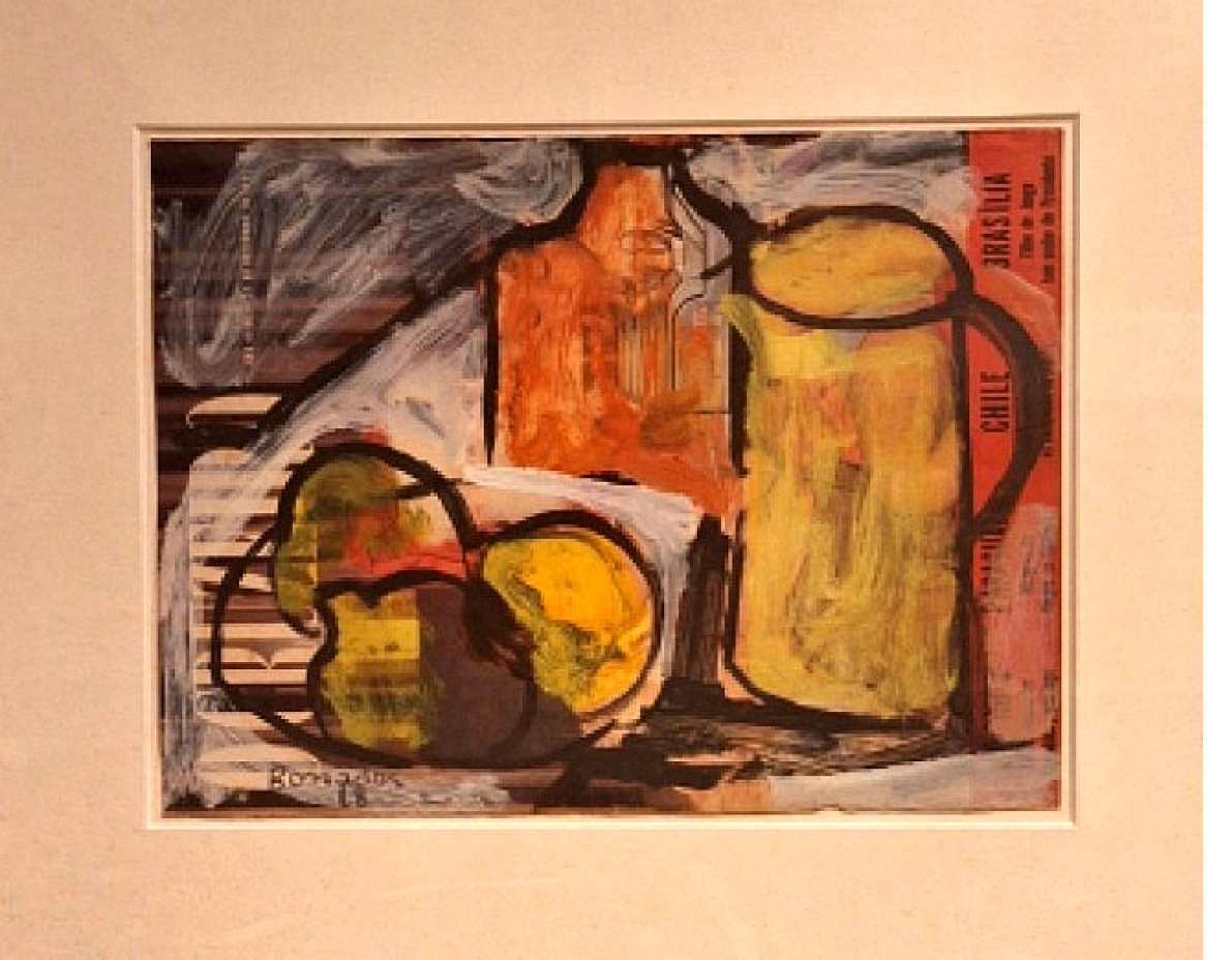 Aldo Bonadei - Guache sobre a capa da revista "O Cruzeiro" de Dezembro de 1961 - Assinado e datado de 1968 - Medidas 26 x 33 cm - Reproduzido no leilã.