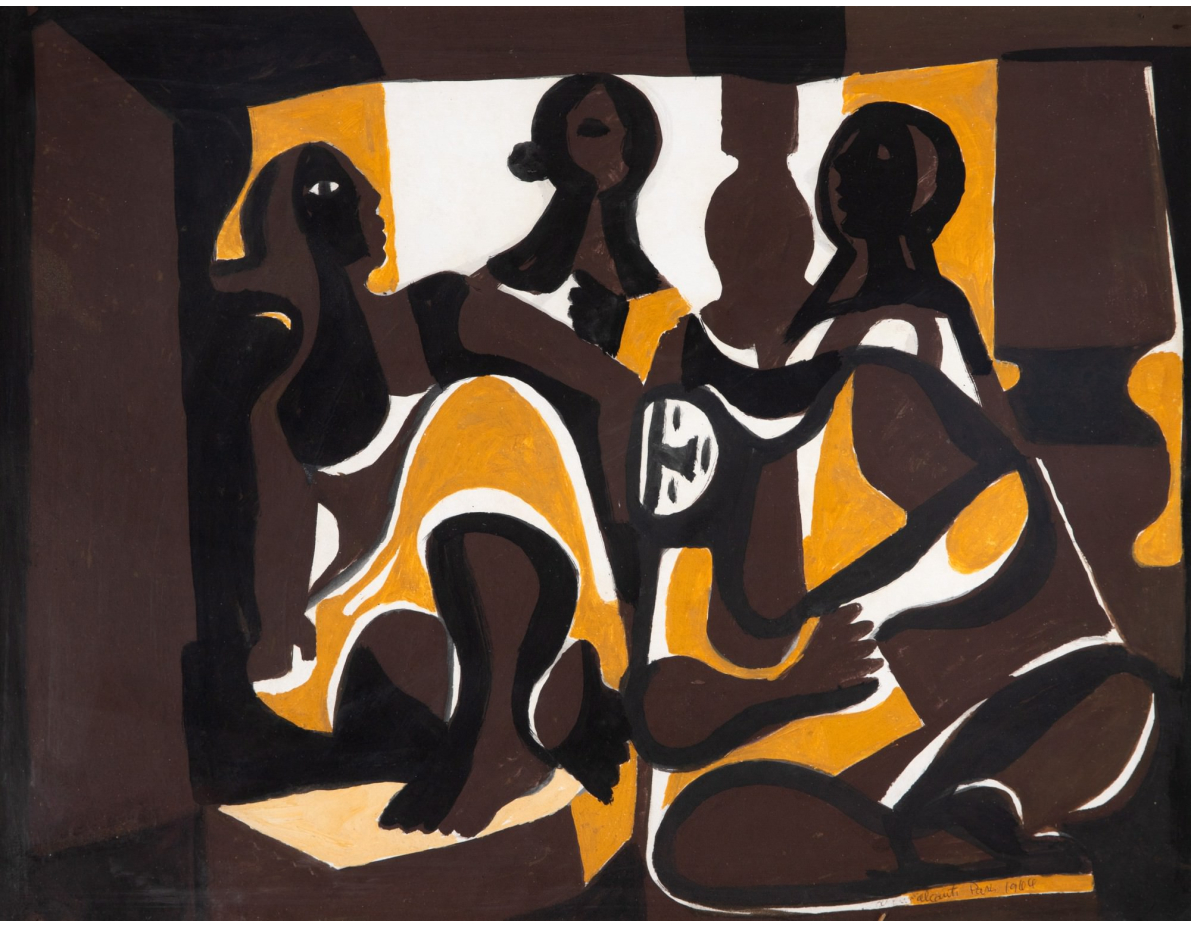 Edi Cavalcanti - Mulatas - 49 x 64 cm - Guache sobre papel - Assinatura canto inferior direito e Data 1966 .